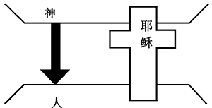神 差 他 儿 子 耶 稣 基 督,为 我 们 的 罪 死 在 十 字 架 上,成 为 神 与 人 中 间 的 桥 梁,沟 通 了 两 者 之 间 的 深 渊。